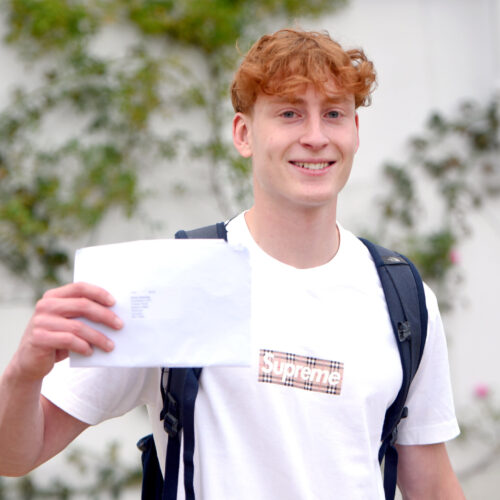 “I feel quite lucky really. The standardising system felt like a weird way to measure grades but I’m excited about being offered my place, hopefully the course will be in real life and not over zoom. We had a really good year group so I’m leaving sixth form with an all-round good experience.”